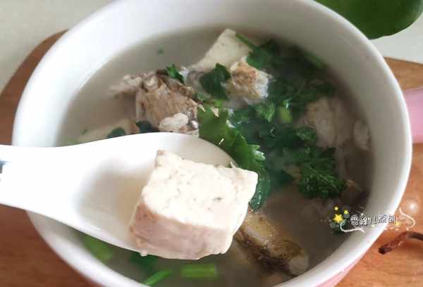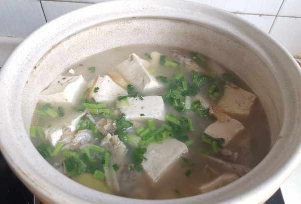 用料:鸡条鱼适量,豆腐1块,盐少许,鸡汤少许,葱丝,姜丝,花生油,香菜适量。