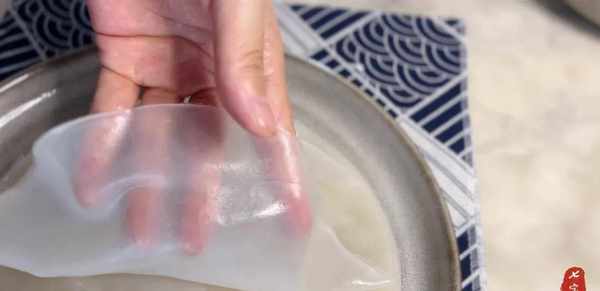 13、这样凉皮就彻底做好了。检查效果是否非常透明和有弹性。