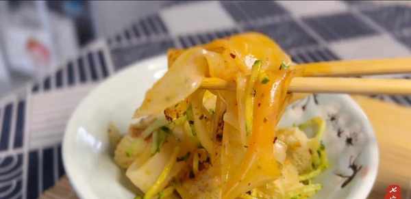 11、这样一个光滑劲道的凉皮就做好了。您可能认为这很简单,但实际上并没有那么难。