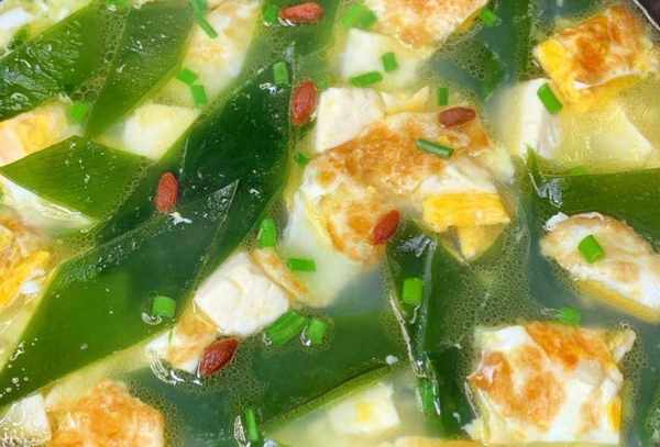 准备食材:海带、鸡蛋、软豆腐、枸杞、葱花。
