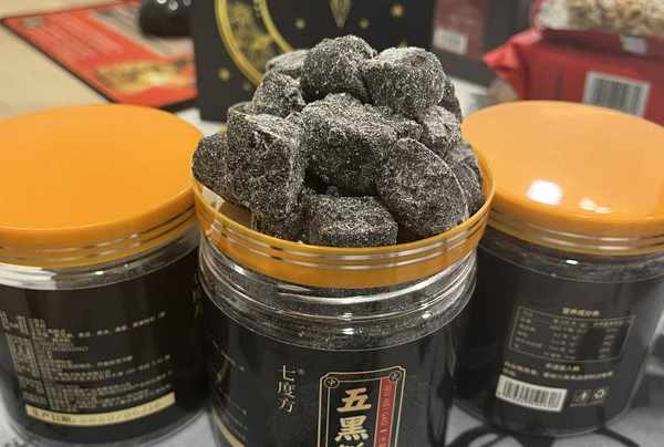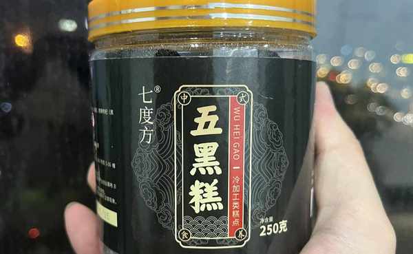 以黑芝麻为主要原料的七都坊五黑糕就是这样。它沿用古法将芝麻蒸九次,将芝麻的油完全榨干。搭配黑豆、黑米等粗粮,佐以桑葚、枸杞,可减少油酥的油腻感,保留食材的柔和香气,更易被人体吸收。