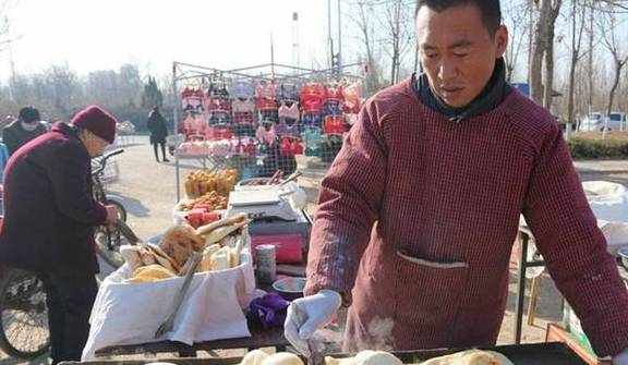 小哥非常轻松的操作自制旋转烤炉制作烧饼,而他的妻子则在旁边制作油条和炸丸子,经营的项目多样化,收入自然也就有了更大的提高。这种平时少见的烧饼制作方法吸引了很多路人的关注,大家都想买几个品尝一下。小哥的烧饼卖的非常火爆,就在我观察的这短短的20分钟时间里,卖出去40多个,再加上旁边小哥妻子卖油条的收入,也是相当可观了。小哥说自己还有想法用这个铁板转炉烤点其它东西卖,等实验做好了就立即上马。人勤快又肯动脑子,做生意哪有不成功?