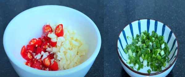 第5步、重新起锅热油,放入蒜末辣椒炒出香味,再倒入刚才准备好的料汁,开大火煮上2分钟,料汁煮好了就淋到娃娃菜上面就可以了,最后撒上葱花。