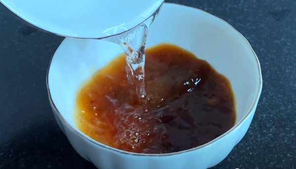第3步、再调制一碗料汁:小勺食盐、适量鸡精和白糖、2勺生抽、一勺蚝油、一勺淀粉,小半碗清水,搅拌均匀备用。