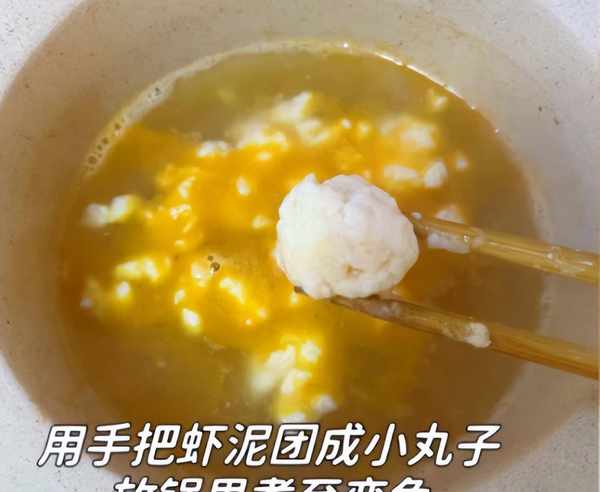 步骤5:将虾滑做成圆形,全部都下在锅中,等待虾滑煮至浮上来,还可以加上一些鸡蛋,放入菠菜和粉丝煮一分钟,根据自己的喜好添加佐料(个人建议只加食盐和胡椒粉),最后丢入一些葱花点缀,出锅,这道菠菜虾滑粉丝汤就可以开吃了。