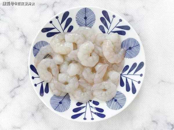 1、虾剥掉虾头和虾壳,挑掉虾线,留下虾仁,清洗干净,用厨房纸擦干表面水分。加入2勺料酒和1勺盐,抓拌均匀,腌制15分钟。