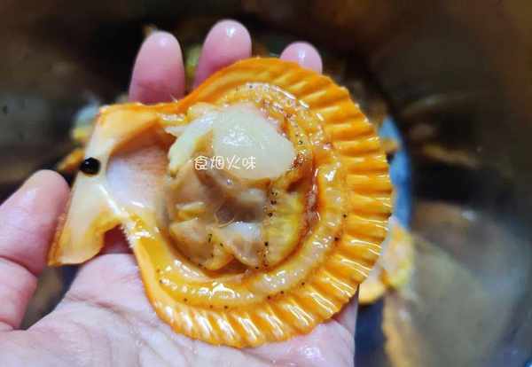1.买回来的扇贝放在盆中,准备一把刀子,将扇贝撬开,只留一半壳,另外一半不要。用小刀将扇贝里面的内脏都清洗干净,打开里面有一块黑黑的东西,它是不能吃的,要用剪刀剪掉;