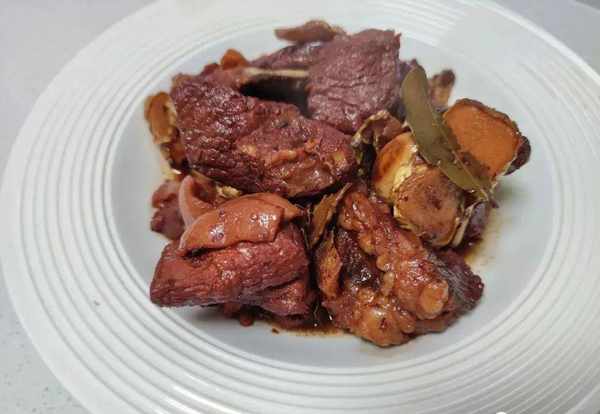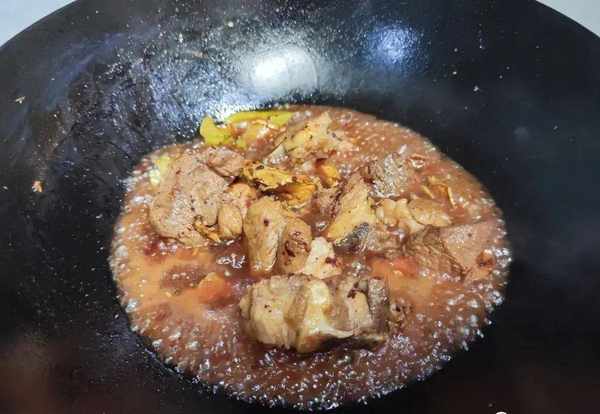 经过炖锅中炖煮出来的羊肉软烂,而且口感细腻,特别的好吃,在炖煮的时候还会散发出一股浓郁的清香味。锅中的羊肉炖了两个小时后,也就成下面这一种状态。浓郁的香味,用筷子一插很容易掐进去,这样子就可以关火出锅了。