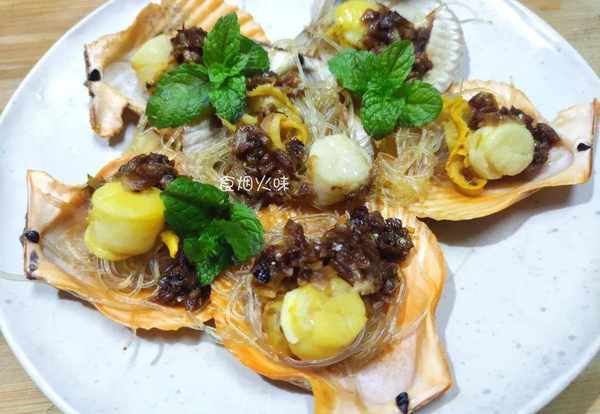 鲜甜美味的扇贝粉丝就可以完成,取出的时候要注意小心烫手,最后放入薄荷叶调味。