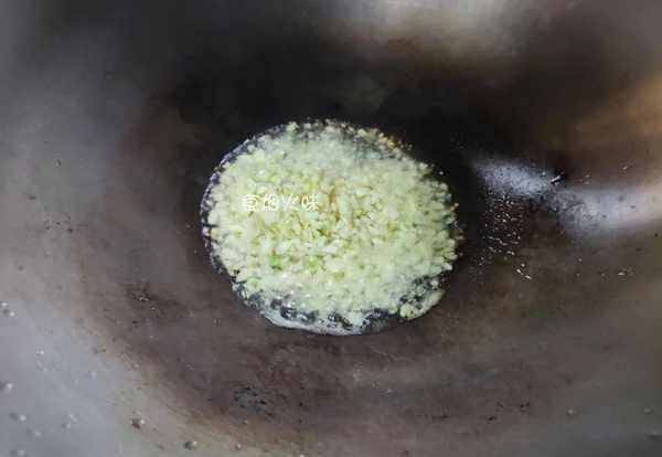 6.准备一个干净的锅,锅中的水分干后,倒入蒜泥,用小火煸炒。锅中的蒜泥炒出香味后,倒入适量的酱油,铲子将它们翻炒均匀,炒香后关火即可;