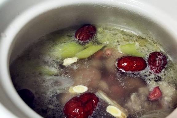 加入红枣,花生,黄芪,当归再煮20分钟(当归和黄芪不要放太多,不然中药味太浓,影响口感)。