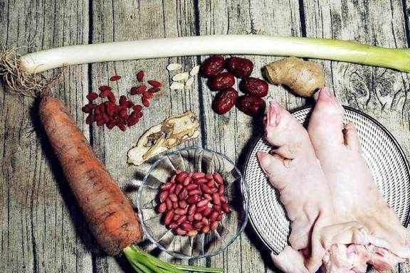 【食材介绍】:猪蹄1个,姜1块,大葱1根,盐2克,料酒1勺,红枣6个,枸杞30个,红皮花生100克,黄芪1克,当归3克,胡萝卜1个,清水800毫升。