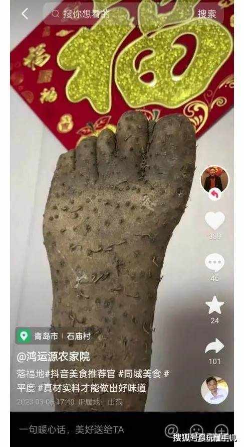 视频一经发布,立即引发网友关注热议。网友直呼:“这是山药成精了?!”、“我还以为是个大脚丫子!”、“真佩服大自然的鬼斧神工”、“我还以为是刚从地里回来,沾了一脚泥”、“这个寓意好,有福字,有足,福足,生活富足。”