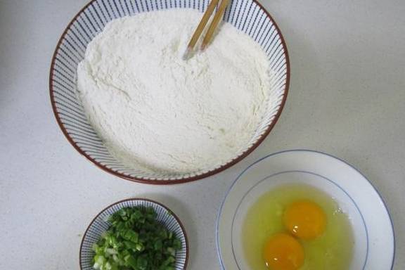 需要的食材;主料;面粉200克鸡蛋2个调料;盐4克小葱10克油少许