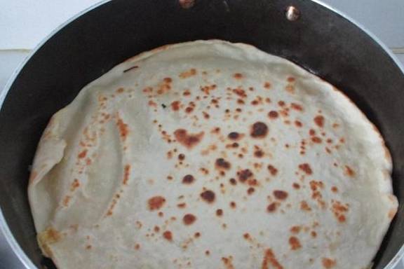 我们这里一般食用的面饼通常是死面,也就是无需发面,要吃软软的就把面糊调匀后直接入锅煎熟即可,要吃脆香的就要动起你的小手,揉一揉,醒一醒,再动手制作。面团只要轻轻的揉匀即可,千万不要多揉,不然面粉出筋后口感会变得硬硬的。