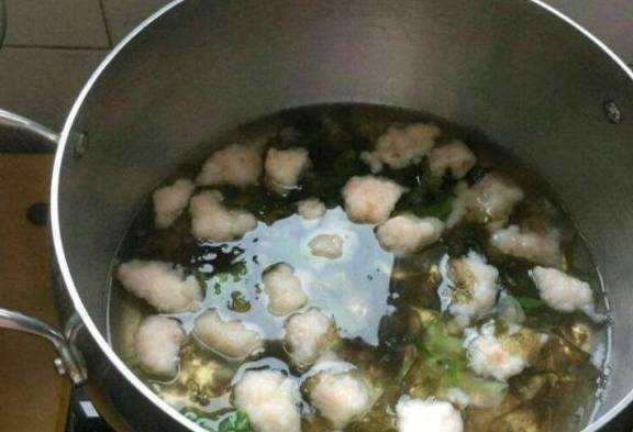 吃腻了虾仁可以试试做成虾滑,放了紫菜的虾滑汤超鲜,紫菜富含胆碱和钙,铁,能增强记忆力,促进骨骼,治疗孕期水肿的辅助食品。