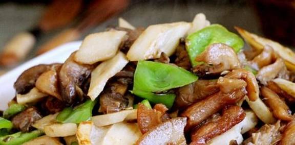 推荐一:肉炒藕片平菇