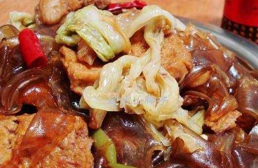 猪肉炖粉皮是一道由五花肉、粉皮、白菜、大葱等做成的美食。猪肉炖粉皮是一道常见菜,家家户户都会做,并且经常食用,营养丰富。