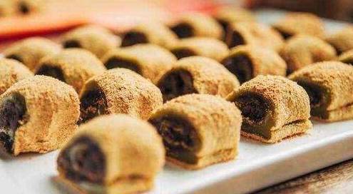 驴打滚,是老北京和天津卫传统小吃之一,成品黄、白、红三色分明,煞是好看。因其最后制作工序中撒上的黄豆面,犹如老北京郊外野驴撒欢打滚时扬起的阵阵黄土,因此而得名"驴打滚"。