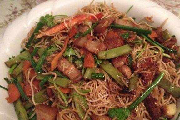 焖面,有的地方叫炒面,反正在我们就叫焖面,做焖面的肉要选用肥瘦相间的五花肉,这样做出的口感才会软润鲜香