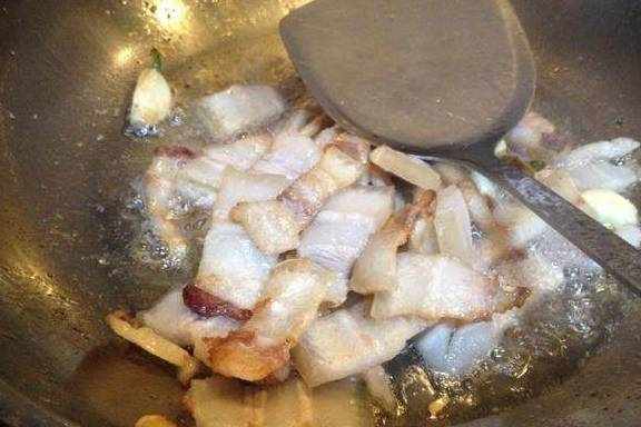 将五花肉倒下去把油煸炒出来。