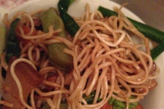 我来一碗,就用筷子挑开,非常的有嚼劲却不油腻。加上里面的料非常的足,真的是太好吃了。