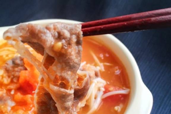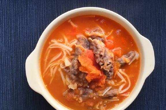 搅两三下,就可以出锅了。米饭党可以来碗白米饭,浇一点汤汁,就着香嫰的肥牛和爽滑的金针菇,瞬间能下一碗饭;面条党可以清水煮锅面条,然后捞出来,直接放在汤里吃,就是一碗高档番茄肥牛面;至于不吃主食党,就开心地大口吃肉,大口喝汤吧!