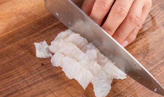 2.龙利鱼解冻之后,切成小块备用;