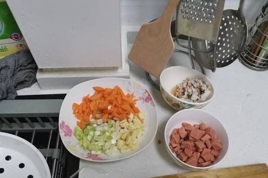 3.备料:方便面开水煮稍硬放好