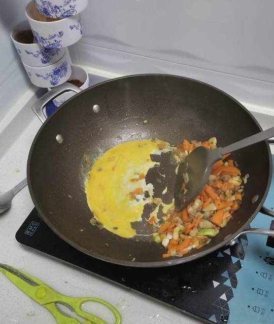 6.提前超好鸡蛋,下鸡蛋(自己忘提前炒鸡蛋,及时炒的)