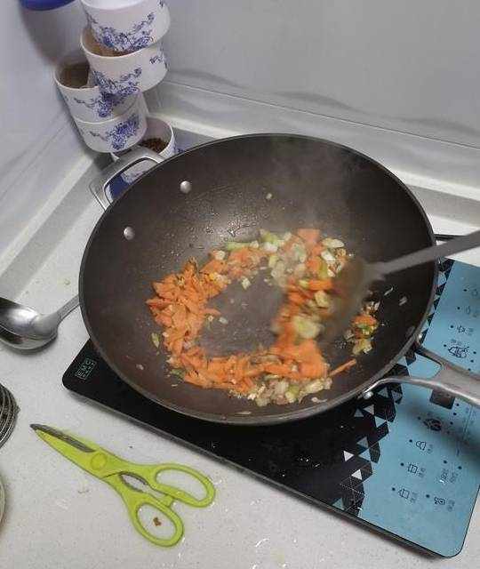5.下牛肉粒,萝卜块,翻炒至七分熟