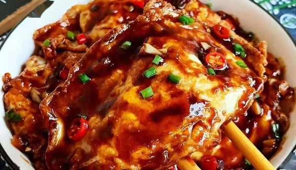 3:锅中留底油,加蒜末爆香,倒入糖醋酱汁,翻炒至变色浓稠,再放入煎好的鸡蛋,翻炒均匀至裹上酱汁,再撒上葱花和辣椒圈即可