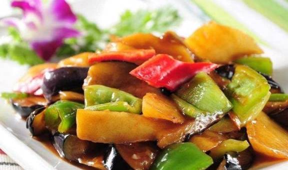 地三鲜是东北的一道传统名菜,用料简单,做法也非常家常,用茄子、土豆和青椒烹饪而成,味道香浓有营养,只用这三种非常普通简单的食材就能做出咸鲜美味的菜肴。这道菜是一道非常容易上手的家常菜,百吃不厌,而且这三种食材都简单好买又便宜,几块钱就能做一大盘。土豆的热量很低,营养很丰富,是非常理想的减肥食品,还可以促进消化,好处非常多。茄子也是一道比较家常的蔬菜,含有丰富的维生素,常吃对皮肤好。青椒含有的维生素C比茄子和番茄都高,还能增进食欲,这三种食材一起炒制,鲜美有营养。