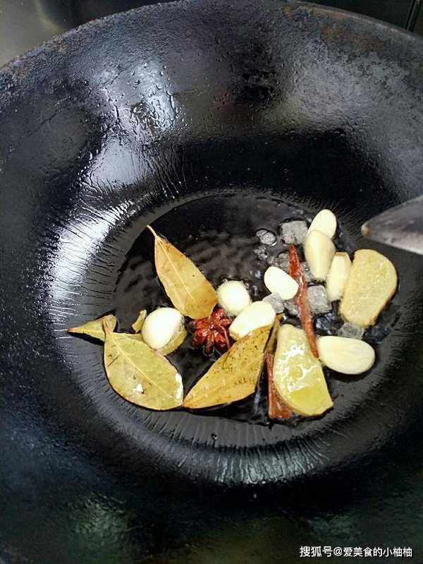 4、开火做锅,等待油热后,依次加入辅料爆香,然后加入料酒继续翻炒,最后加入老抽和生抽调色,翻炒均匀即可。