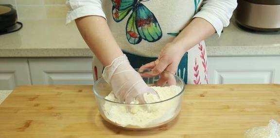 我们先和一个水油面团,在大碗里加240克普通面粉,60克猪油,50克白糖,用120克温水和面,面团揉好之后包上保鲜膜醒面20分钟再用240克普通面粉和一个油酥面团,在里面加120克猪油,什么又不用加了,直接下手揉成面团,油酥面团揉好之后也包上保鲜膜醒面20分钟