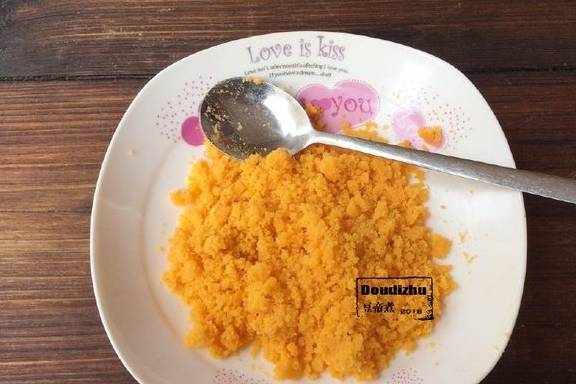 做法:制作之前首先制作馅料,把咸蛋黄放入烤箱180度上下火中层烤制八分钟。后使用擀面棍压碎