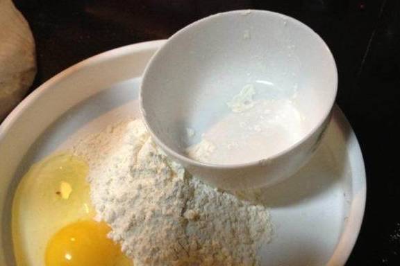 小半碗面粉加上一个鸡蛋。