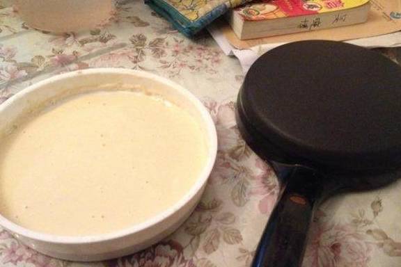 这就是我做鸡肉卷的神器。薄饼档,插电,加热,调好面糊,很快皮就做好了。