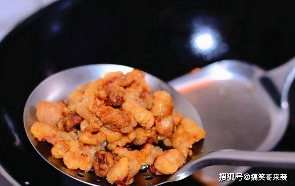 这样做好的猪油渣香香脆脆,没有多余油脂,味道辣辣的,很适合用来下酒。