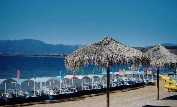 抚仙湖红宝石沙滩,它位于云南省玉溪市江川县江城镇冯家湾滩。沙滩位于孤山岛对面,站在孤山岛上,极目湖面,视野非常地开阔。是通往抚仙湖2023孤山岛乘船必经之地。沙滩有人力船、脚踏船上10艘。在这里不管是冬夏,邀上三五个好,租条船泛舟湖上,畅游素以古滇文明著称的高原淡水湖泊,当然了,在上船前备上一点干粮,一路有说有笑,是不是别有一番风味呢?