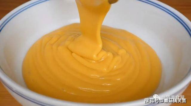 8、我们可以看一下,蒸熟的红薯糊,变成了这个橘黄色,质地是比较软糯的。