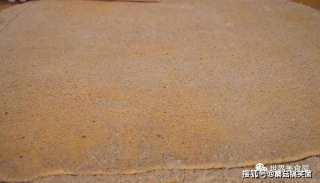 11、接下来我们用擀面杖,将红薯泥擀开,形成一张薄薄的面皮,让面皮都粘上黄豆粉。