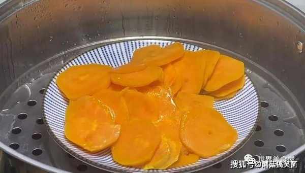 2、随后将红薯切片,切片越薄越好,容易蒸熟。将它冷水上锅,蒸10分钟就可以。