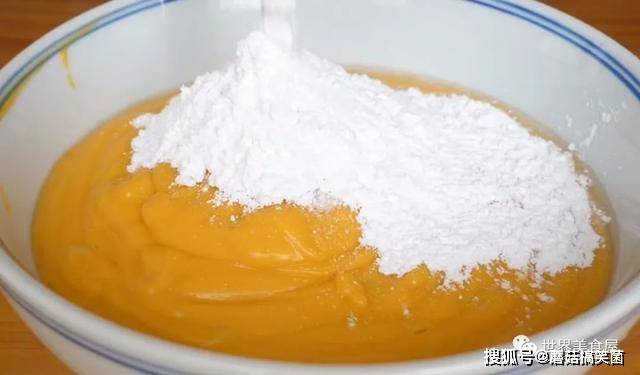 5、在红薯泥中加入砂糖和糯米粉,红薯泥和糯米粉的比例,是一比一,分别为250克和250克。砂糖可以随意放,喜欢吃甜的,就放多一些。