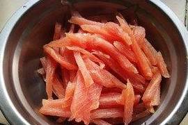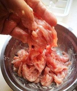 1.猪里脊肉切成肉丝,不用太细。