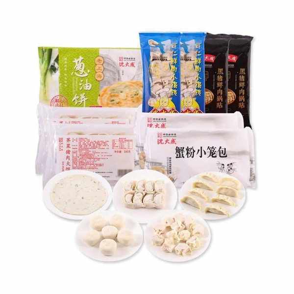 虾仁鲜肉小馄饨120gX2包 手工荠菜猪肉大馄饨260gX2包 黑猪鲜肉锅贴300gX2包 蟹粉小笼包180gX2包