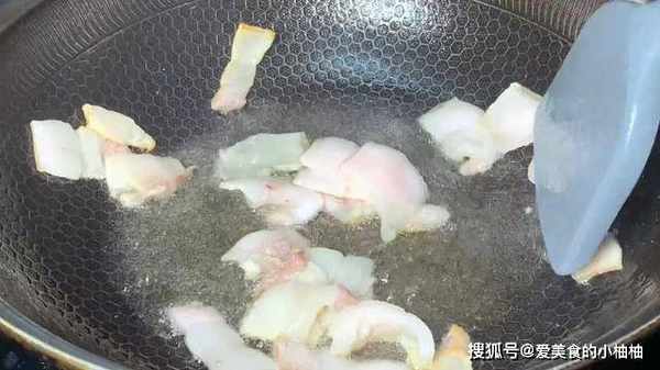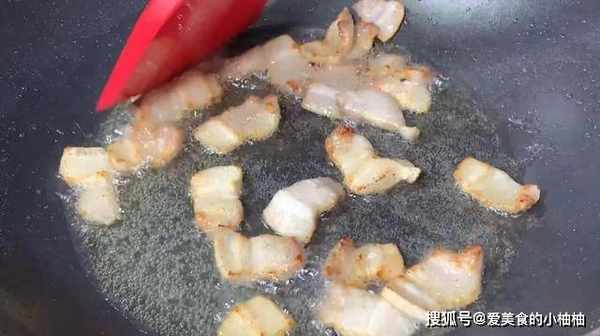 6.起锅烧油,油热下入五花肉翻炒,炒出油脂。
