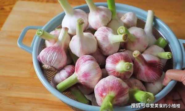 3.清洗干净之后,用盐水浸泡4个小时左右,去除大蒜的辣味。