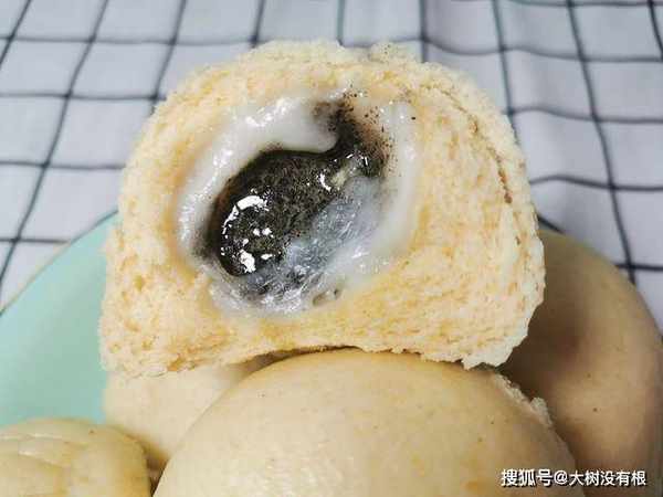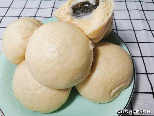 6、蒸好的馒头特别香,蓬松喧软,我们打开一个看看,里边汤圆感觉有爆浆的感觉,特别好吃呢,你赶紧试试吧。