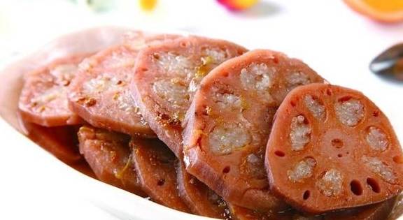 做法:将糯米洗净,泡水3-4小时后,沥乾水分,莲藕洗净,切开尾部,塞入糯米,再用牙签把边盖固定,把莲藕放入锅中,加水盖过莲藕,以慢火煮约1小时,将煮好的莲藕取出,刮掉外皮,再切片放入小碗,加入调料,上蒸笼再蒸30分钟,倒扣入盘